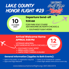 We’re excited for Lake County Honor Flight 29! These events are open to the public, and we invite everyone to participate and spread the word. Stay tuned and help us give our veterans the honor they deserve! Mail Call flyer coming soon!